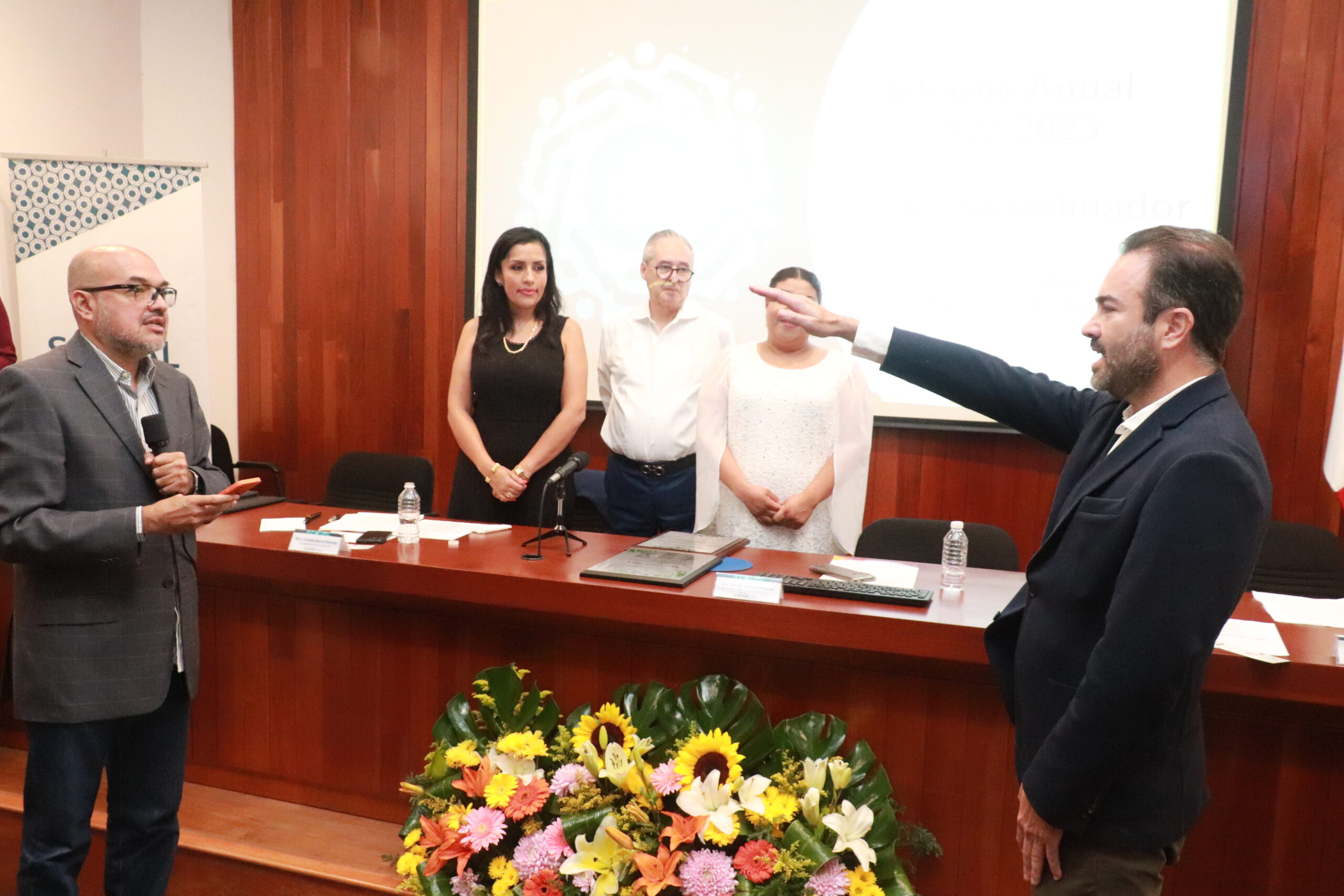 En el marco de la presentación del Informe tomó protesta David Gómez Álvarez como nuevo Presidente del Comité de Participación Social SEA Jalisco y del Comité Coordinador del Sistema Estatal Anticorrupción de Jalisco para el periodo 2023-2024.