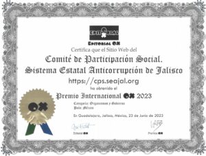 En este sentido en mayo de este año el CPS obtuvo el Premio Internacional OX 2022 y OX 2023 en la categoría de Organismos y Gobierno. Esta distinción internacional demanda de esfuerzos encaminados a fortalecer la comunicación institucional del CPS a través de las Tecnologías de información y comunicación; así como ofrecer repositorios de calidad a la ciudadanía para que den cuenta de la maduración de los Sistemas Locales Anticorrupción (SLA) a través de una de sus partes integrantes.
