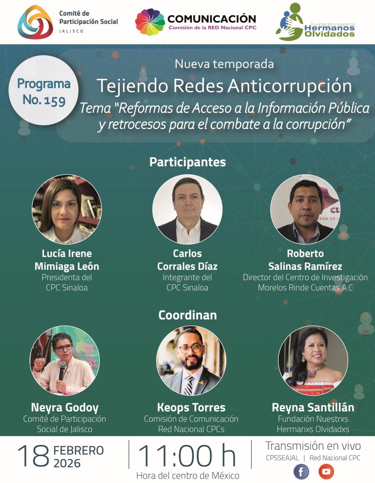 Este proyecto es coordinado por: Neyra Godoy, Comité de Participación Social de Jalisco; Keops Torres, Comisión Comunicación Red Nacional CPCs; y Reyna Santillán, Fundación Nuestrxs, Hermanxs Olvidados.